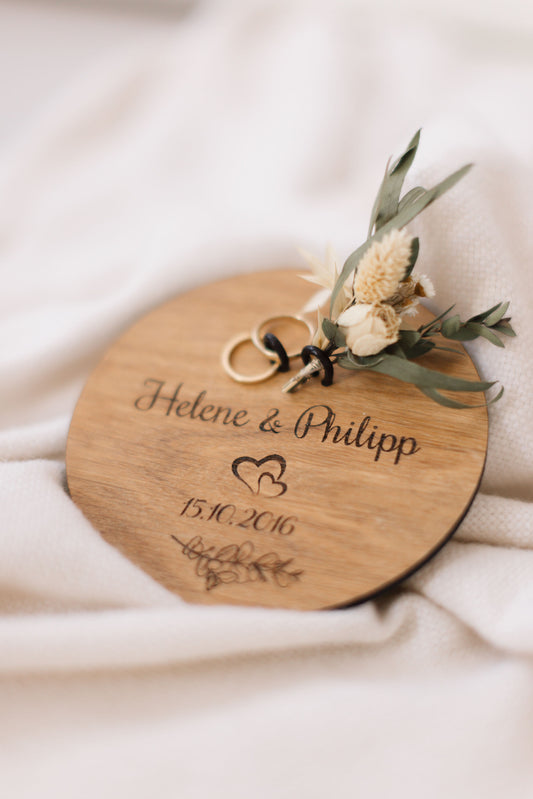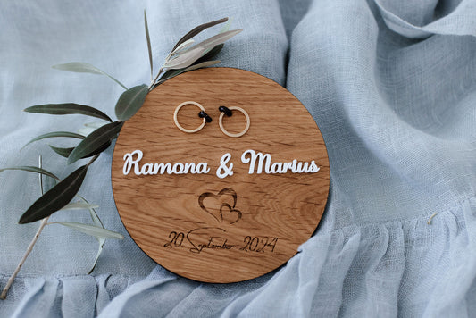 Eichenholz Ringkissen - Hochwertiges Ringbrett für Deine Hochzeit | personalisierbar