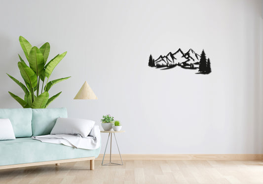 Minimalistisches Lineart Wandtattoo – 3D Optik für Moderne Wandgestaltung | Landschaft | Berge und Wald