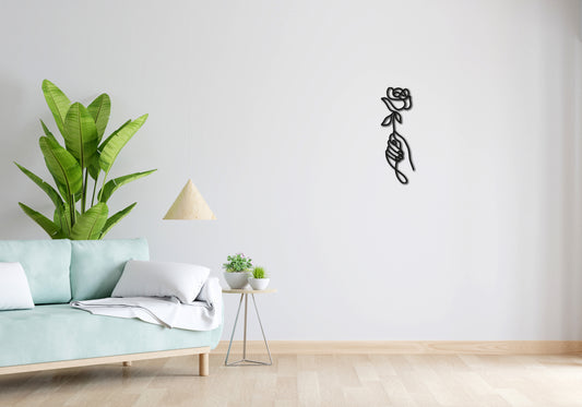 Minimalistisches Lineart Wandtattoo – 3D Optik für Moderne Wandgestaltung | Rose | Rose in der Hand ohne Rahmen | Blume