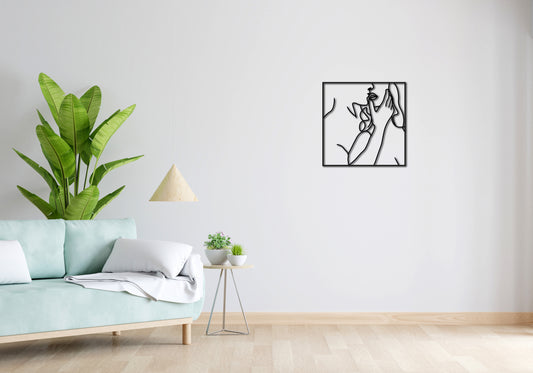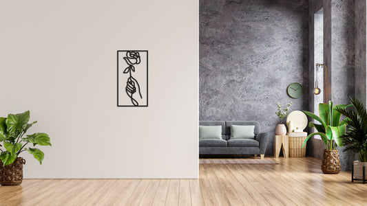 Minimalistisches Lineart Wandtattoo – 3D Optik für Moderne Wandgestaltung | Rose | Rose in der Hand mit Rahmen | Blume