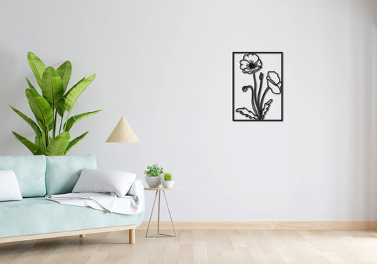 Minimalistisches Lineart Wandtattoo – 3D Optik für Moderne Wandgestaltung | Mohnblume | Blume im Rahmen