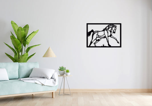 Minimalistisches Lineart Wandtattoo – 3D Optik für Moderne Wandgestaltung | Pferd | Trabendes Pferd