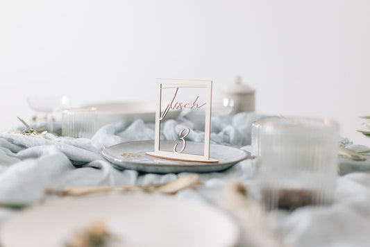 Personalisierte Tischnummern mit Menukarten - Stilvolle Tischdekoration | personalisierbar
