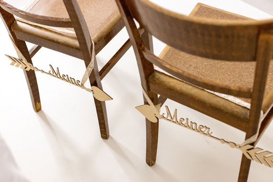 Stuhlschild | Stuhlgirlande | Meine Meiner | Pfeil für Hochzeit | Stuhl Deko | Schriftzug Meine Meiner |
