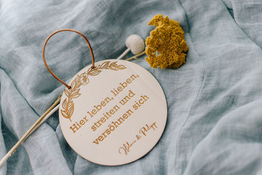 Tür Schild | Türschild | Hier leben, lieben, streiten und versöhnen sich | personalisiertes Tür Schild | Willkommensschild | personalisierbar