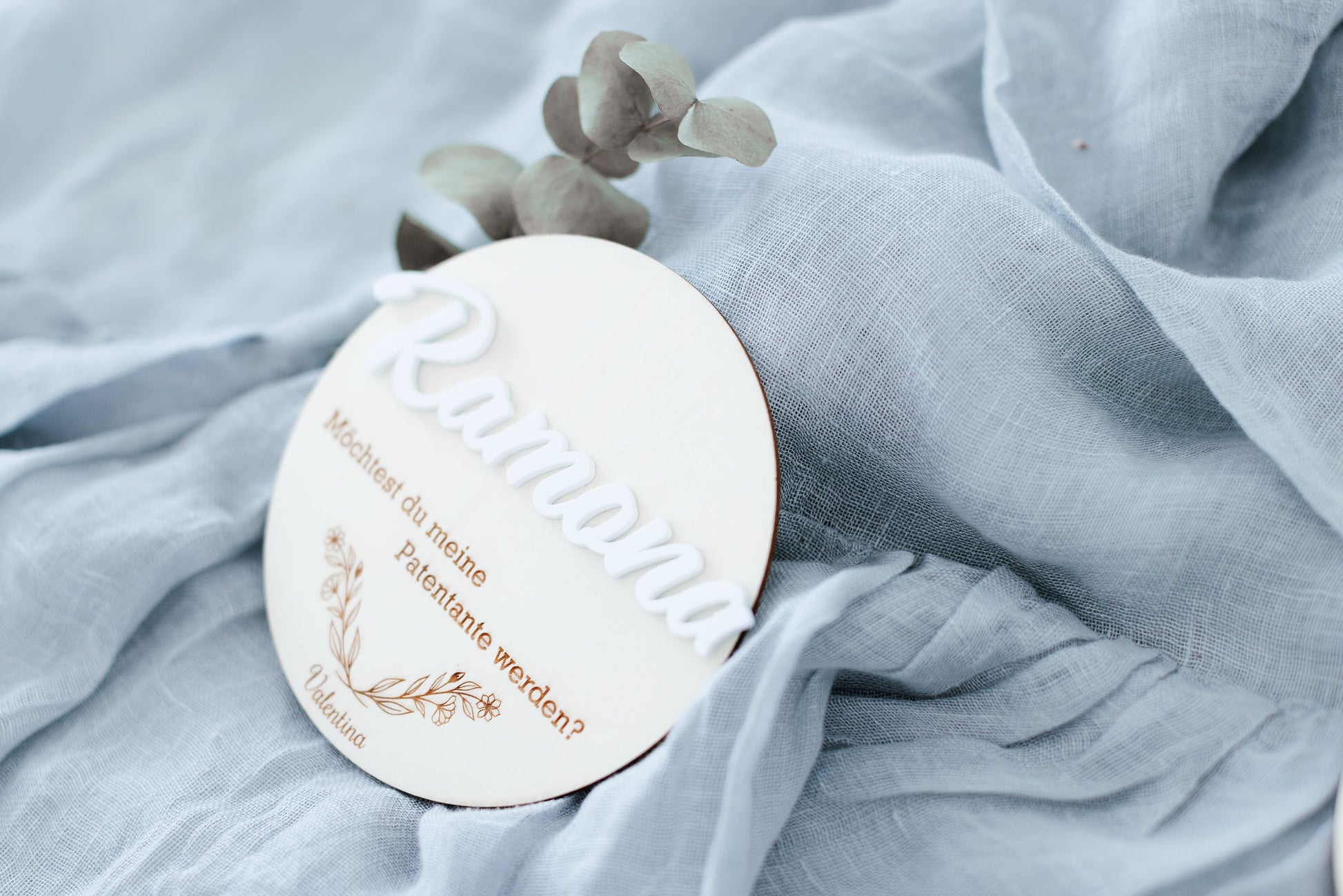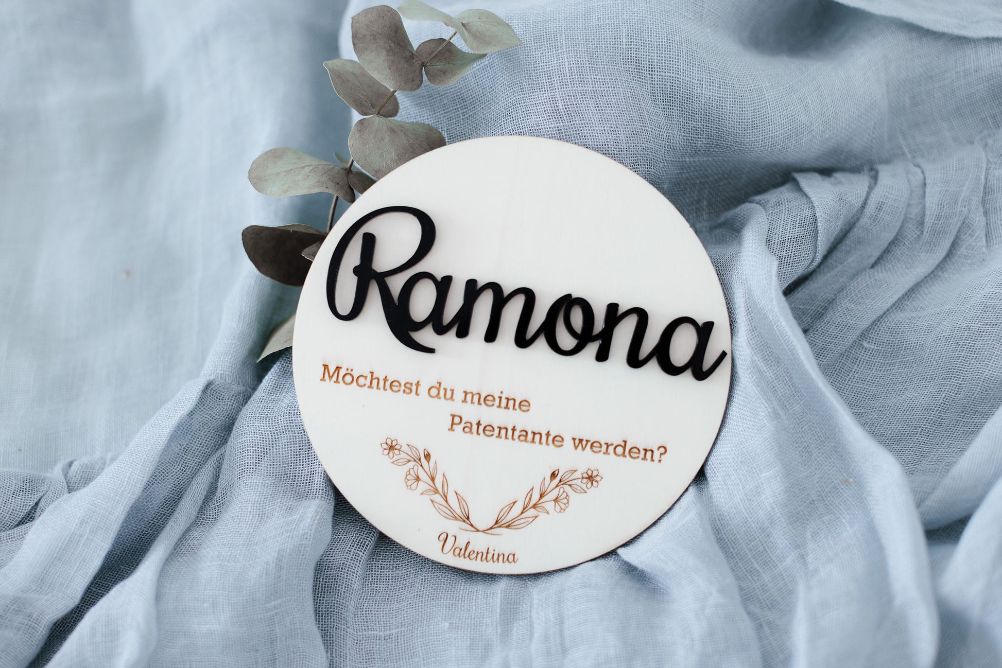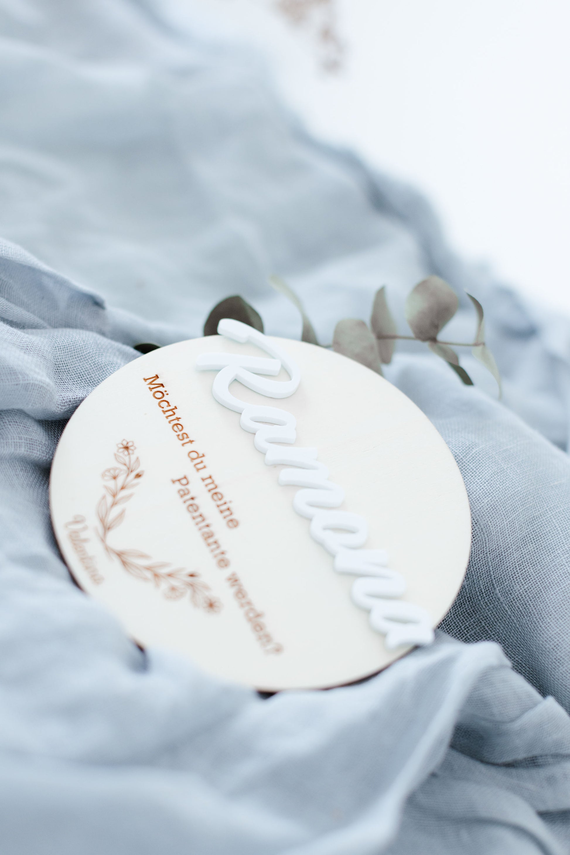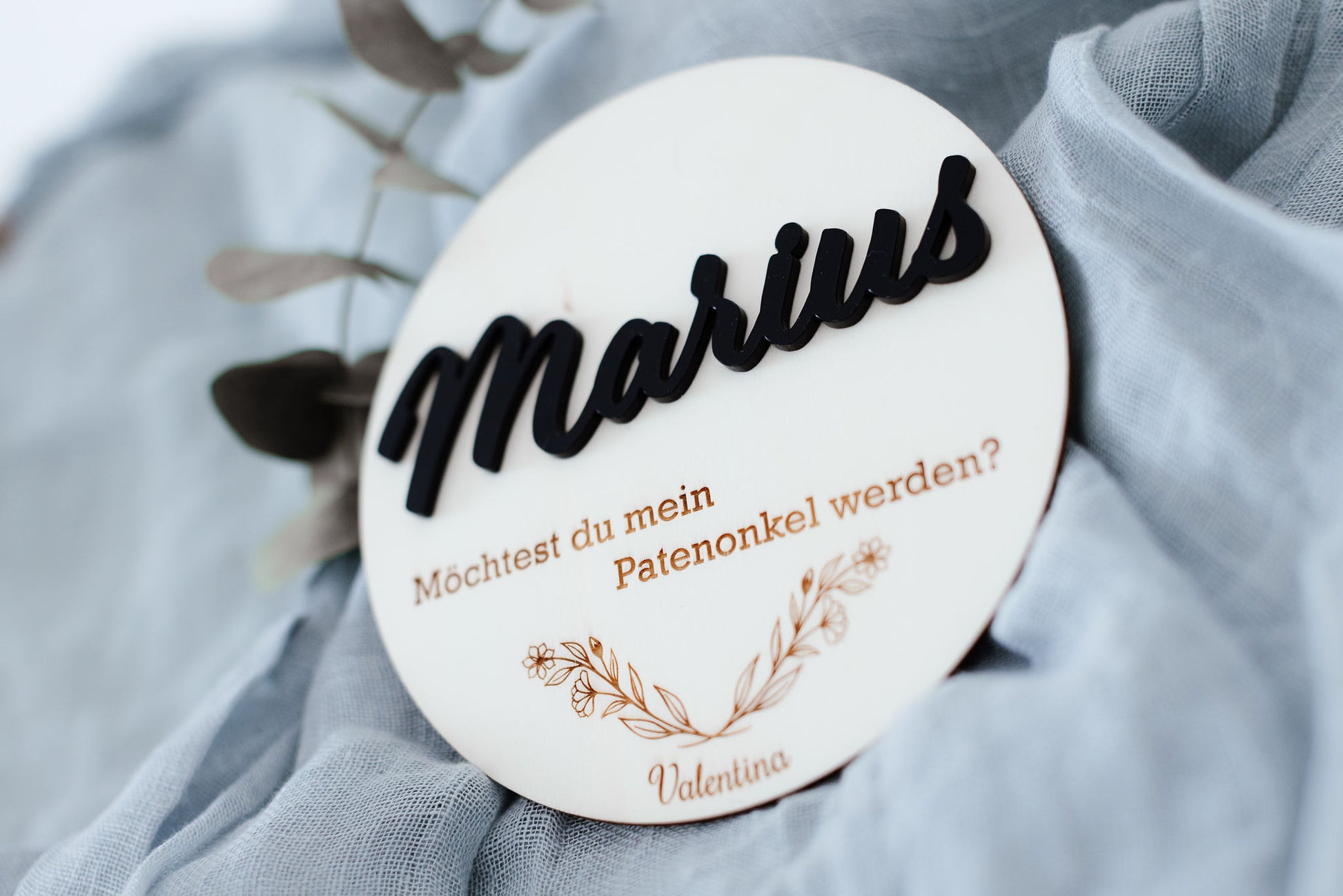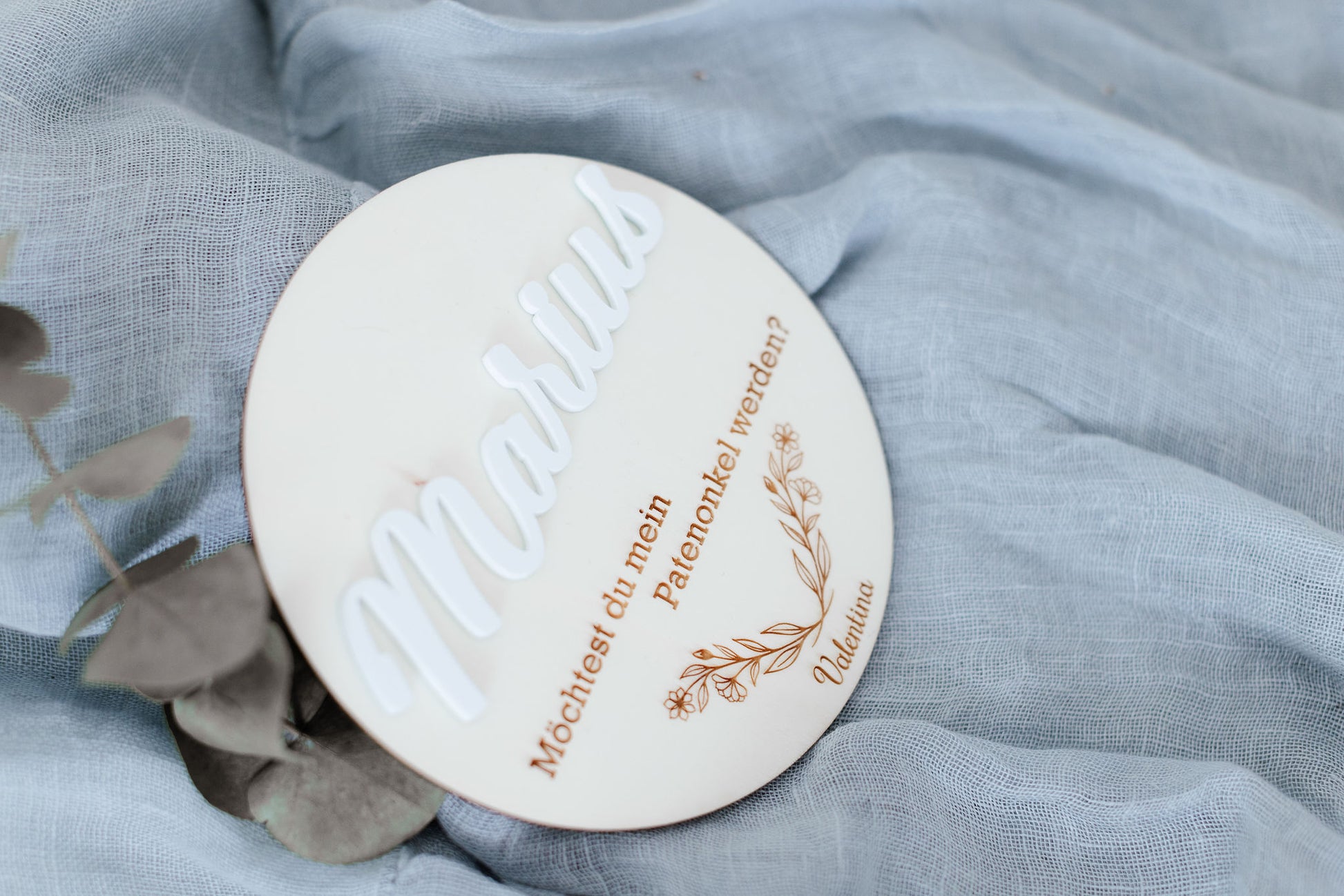 Personalisiertes Rundes Sperrholzschild zur Taufanfrage