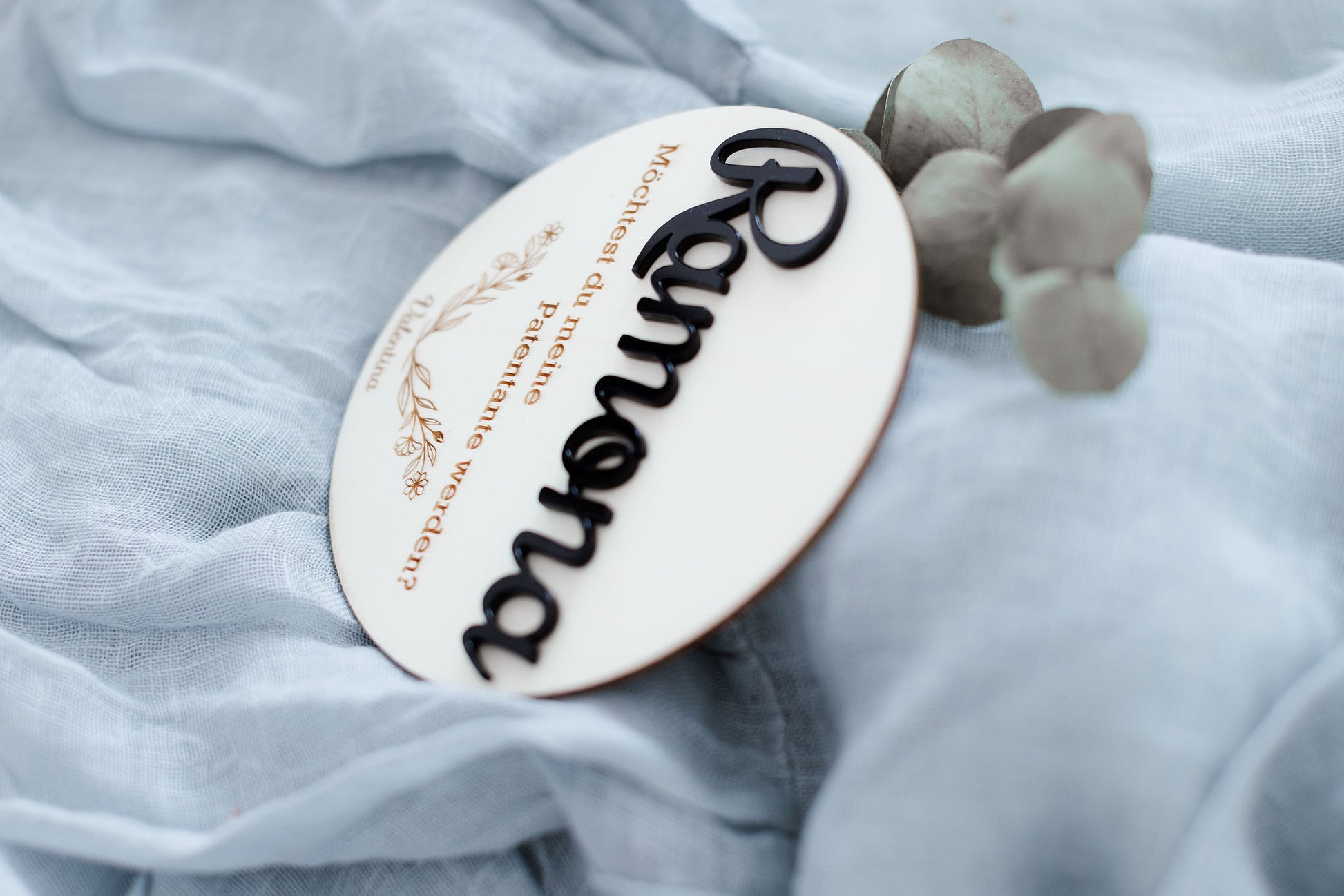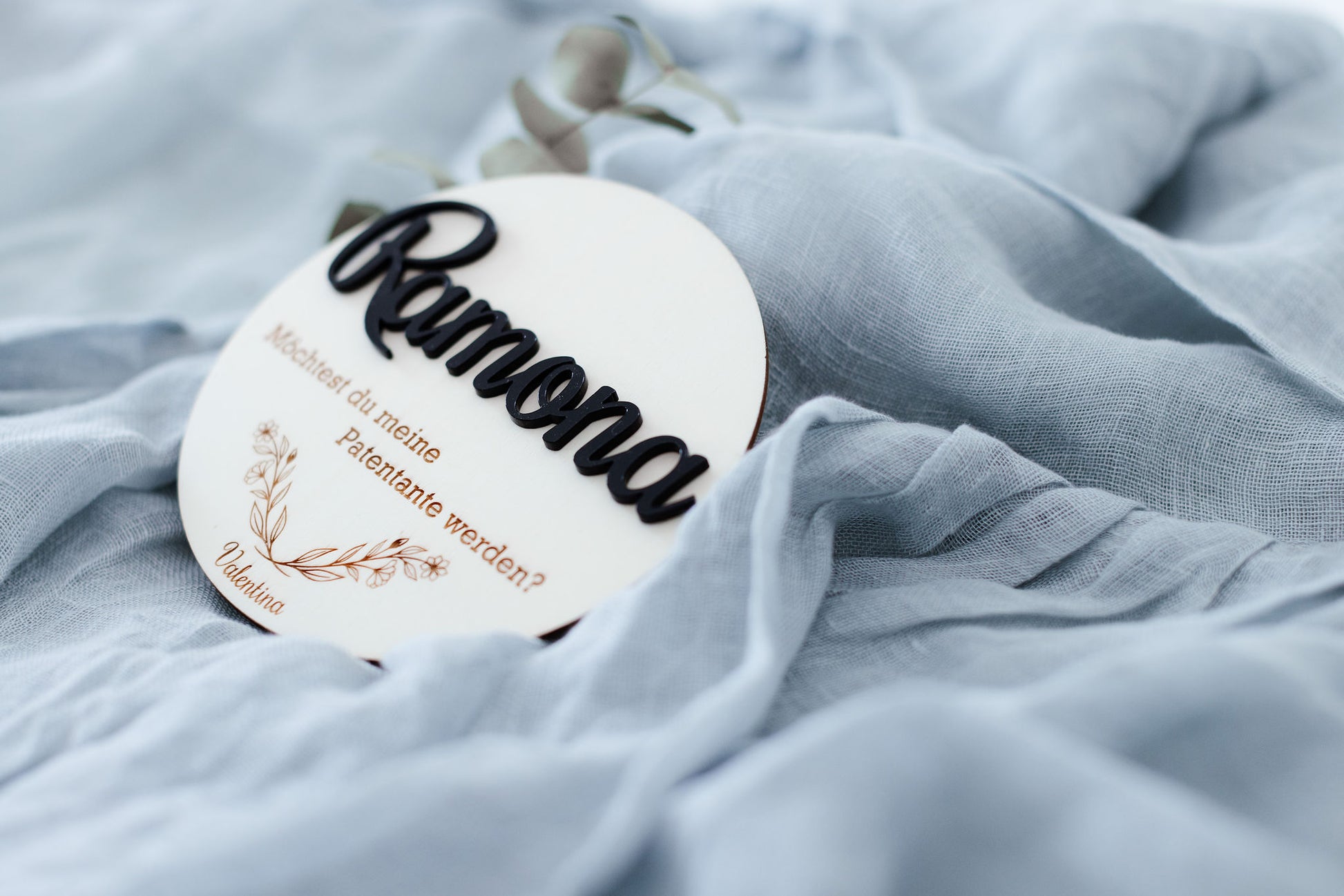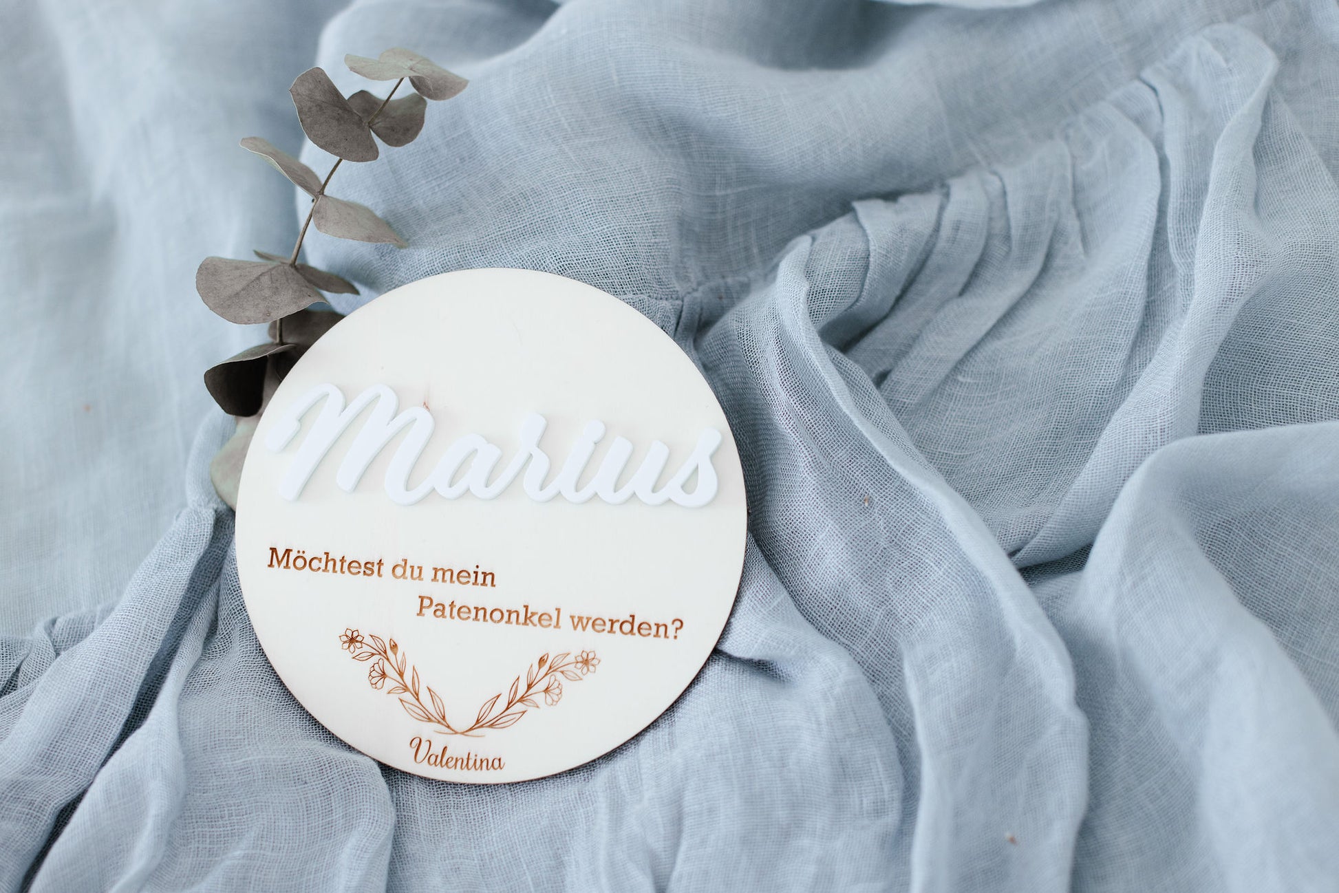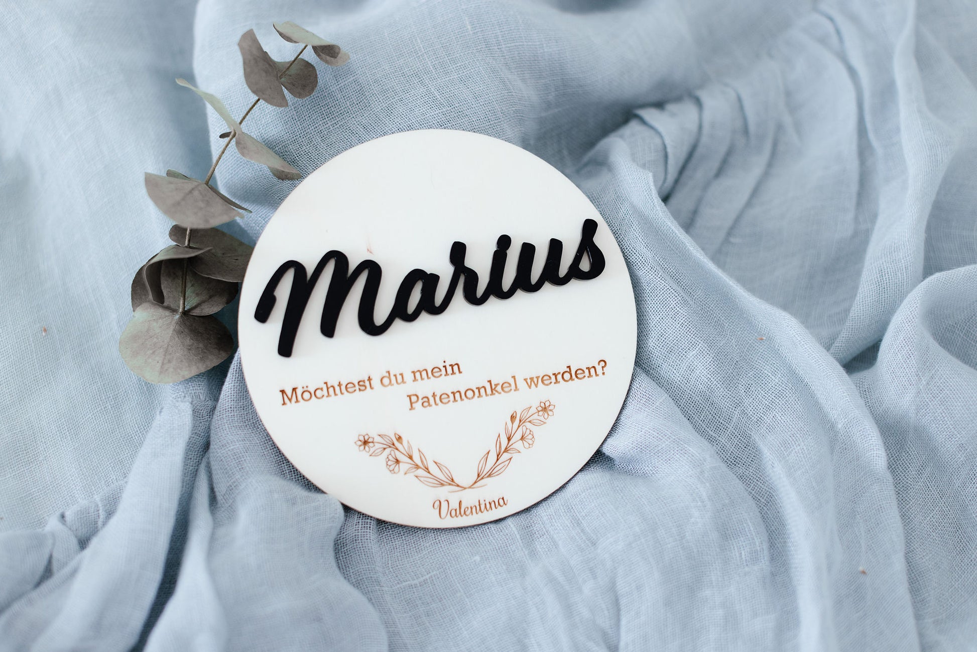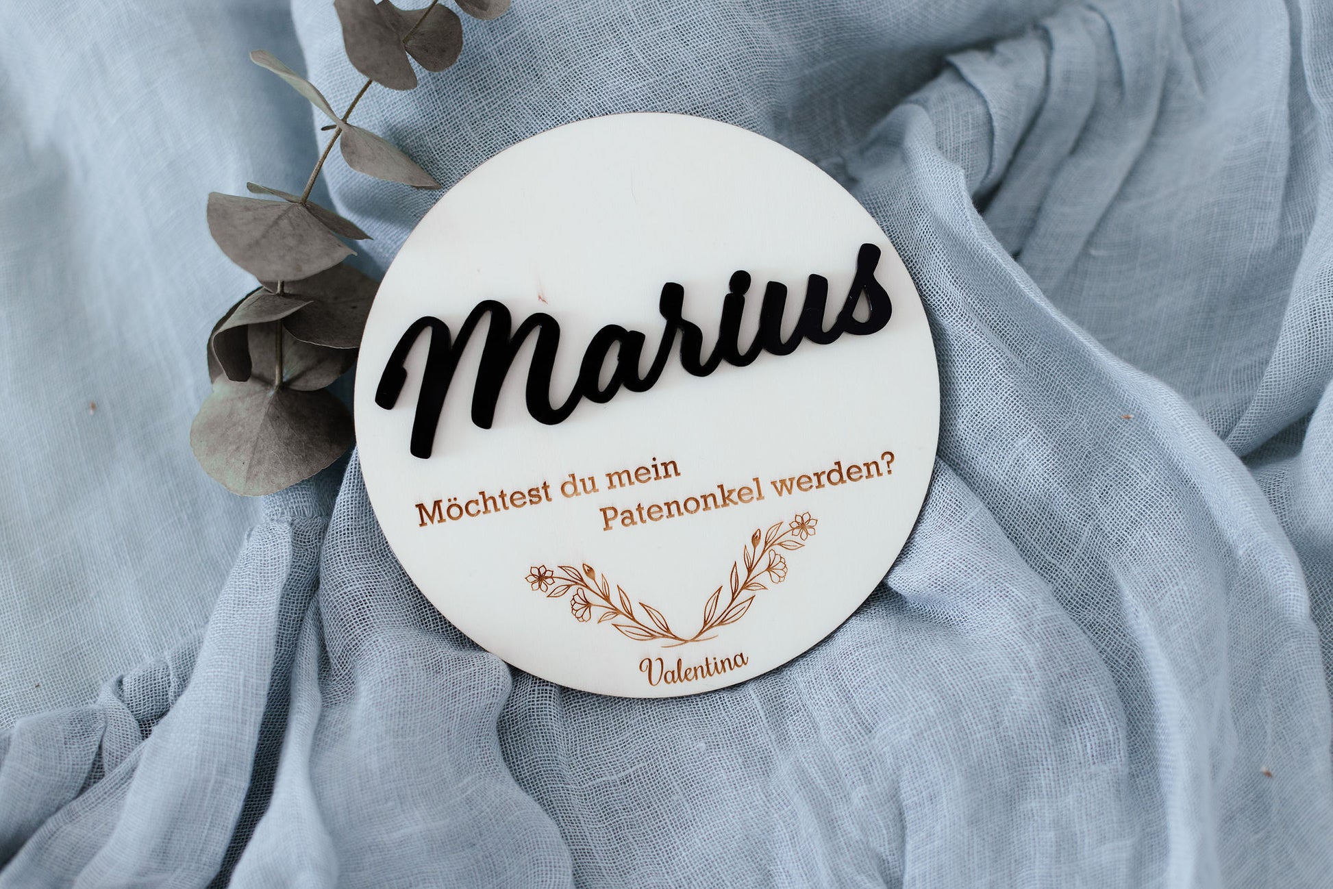 Personalisiertes Rundes Sperrholzschild zur Taufanfrage